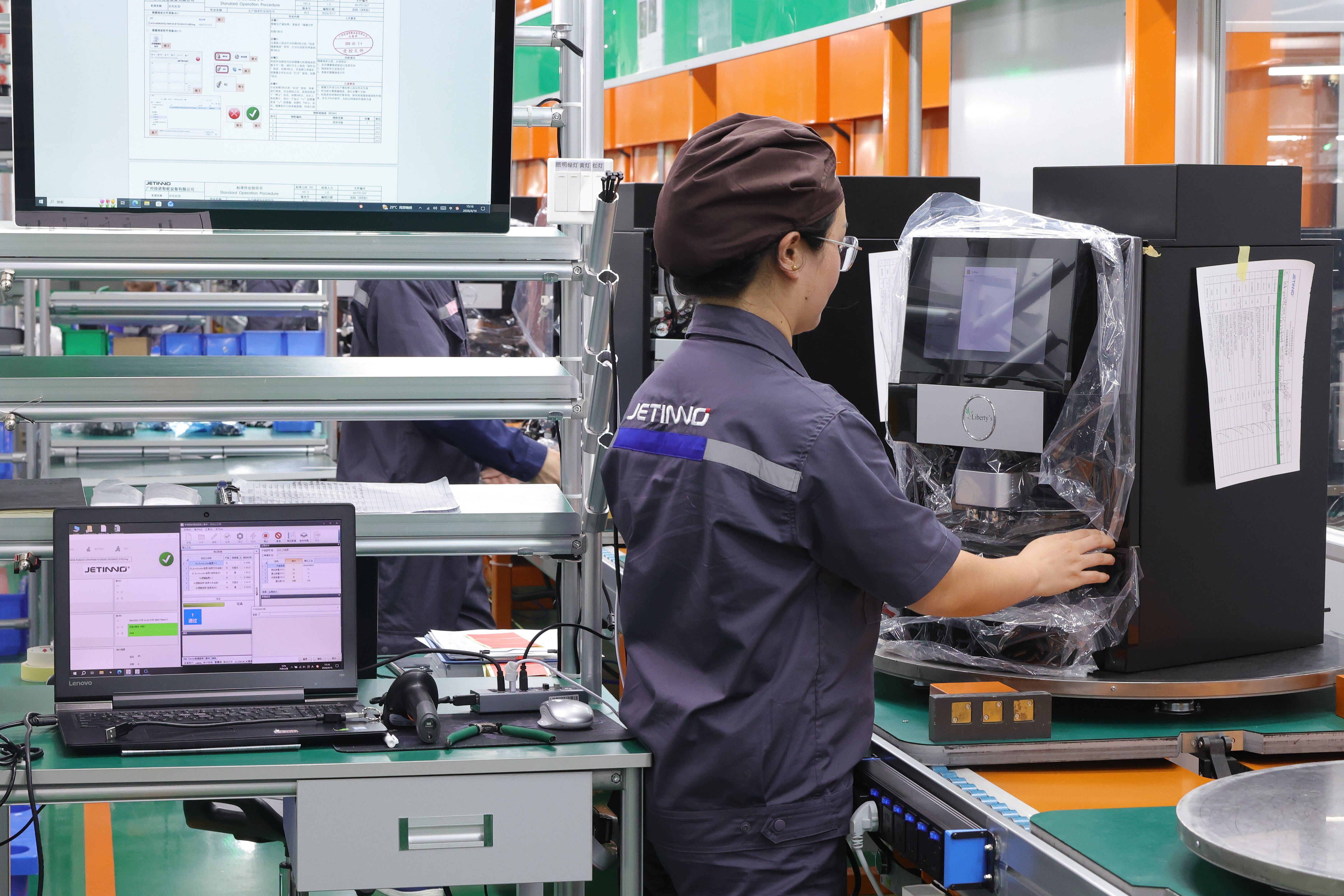 一位欧洲采购商指尖轻点JL560屏幕,选了杯冰拿铁。